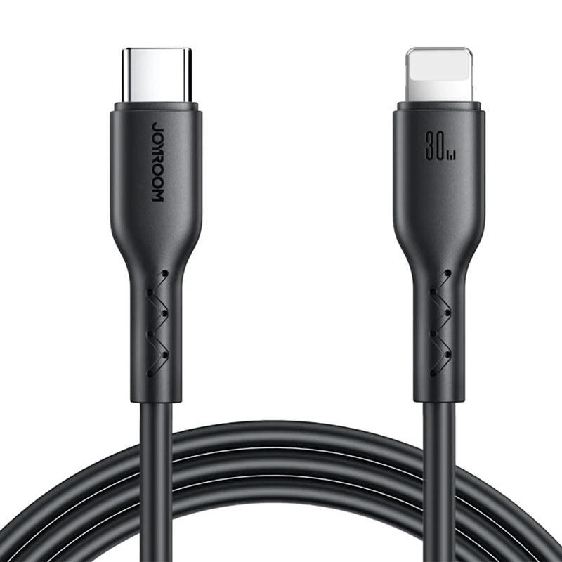 BrandJoyroomNameFlash-Charge Series Fast Charging Data CableModelSA26-CL3ColorBlackTypeUSB-C to LightningPowerUp to 30WCurrentUp to 3ATransmission SpeedUp to 480 MbpsMaterialPVCCable Length1m