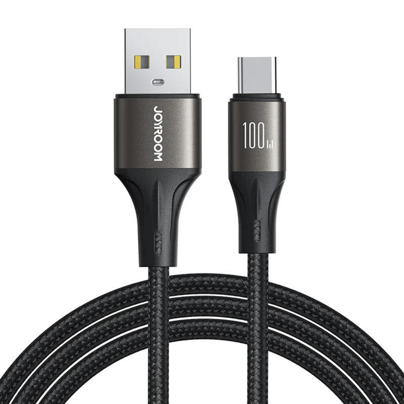 Manufacturer Joyroom Model SA25-AC6 Connector type USB-A to USB-C Power 100W Transmission speed 480 Mb/s Material aluminum alloy braided nylon Length 2 m Color Black