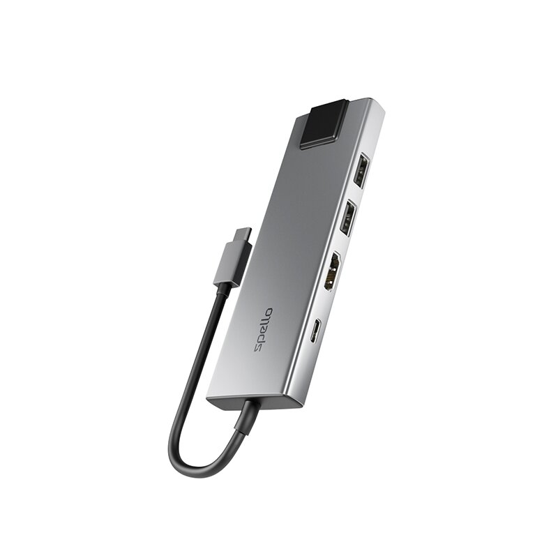Spello USB-C Hub 9in1 snadno rozšíří váš notebook o devět dalších portů. Hliníkový hub obsahuje všechny důležité porty, jako výstup HDMI pro 4K/30Hz displej, tři porty USB-A, 100W USB-C s Power Delivery, sloty pro karty SD a Micro SD, 1Gb/s Ethernet a 3,5mm audio port. Je kompatibilní se všemi operačními systémy a zajišťuje bezproblémový přenos dat a čtení souborů. Díky 100W průchozímu nabíjení můžete napájet notebook, aniž byste museli odpojovat připojená zařízení. Skvělá volba pro připojení všech vašich gadgetů!USB-C PD 3.0: podporuje 5 V/9 V/15 V/20 V/3 A, 20 V/5 A, nabíjení 100 W max., 1x USB-A 3.0: přenos dat až 5Gb/s, 2x USB-A 2.0: přenos dat až 480Mb/s, HDMI port: 4 K/30 Hz, Audio: 3,5 mm Jack, Slot na karty SD/MicroSD: podporuje SD, SDHC, TF, SD2.0, přenos dat až 25Mb/s, Ethernet port: 10/100/1000 Mbit/s, Podporovaná zařízení: jakýkoli MacBook, iPad nebo iPhone s portem USB-C a jakékoli jiné zařízení s USB-C, Materiál: hliník, TPE, ABS, PC, Rozměry: 40×118×12.5mm, Hmotnost: 60g