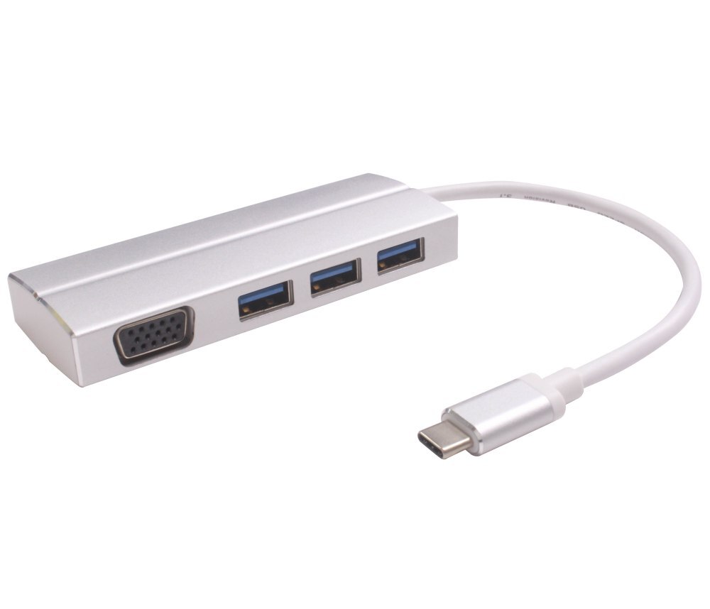 PremiumCord Adaptér USB-C male na VGA female + 3x USB 3.0, aluminum