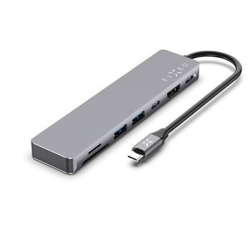 USB hub FIXED HUB Card pro notebooky a tablety, 7portový hliníkový šedý