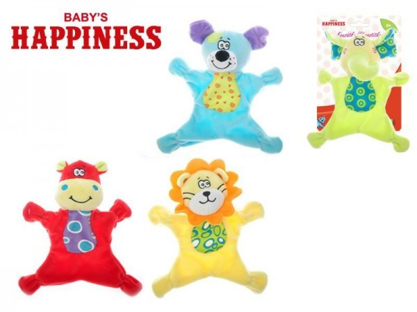 Zvířátko usínáček plyš 18cm s chrastítkem asst 4 druhy na kartě 0m+ Baby´s Happiness