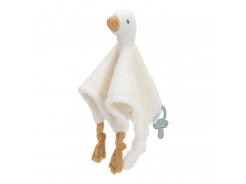 Plyšový muchláček v podobě roztomilé husičky s úchytem pro šidítko láká ke hraní i mazlení. Muchláček je je vyroben z velmi jemného a příjemného materiálu a je ideální jako společník do postýlky pro klidné usínání.