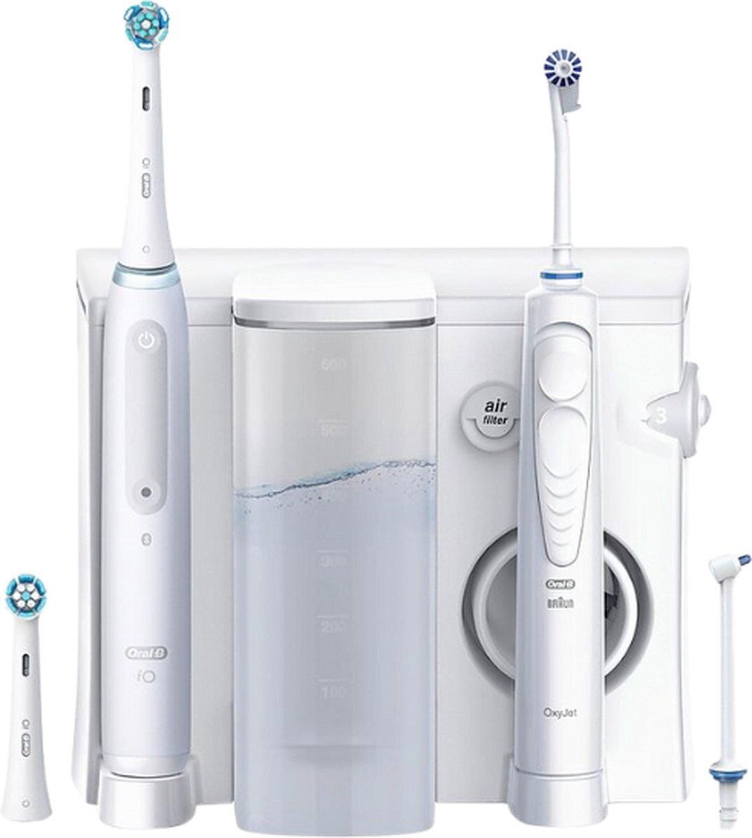 Oral-B Oral Health Center + iO Series 4 White set elektrického zubního kartáčku a ústní sprchy, bílá