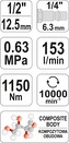Robustní tělo rázového utahováku je zhotoveno z litého kompozitu a duralu, zabezpečuje dlouhou životnost při použití v průmyslu, v garážích a v dílnách.
