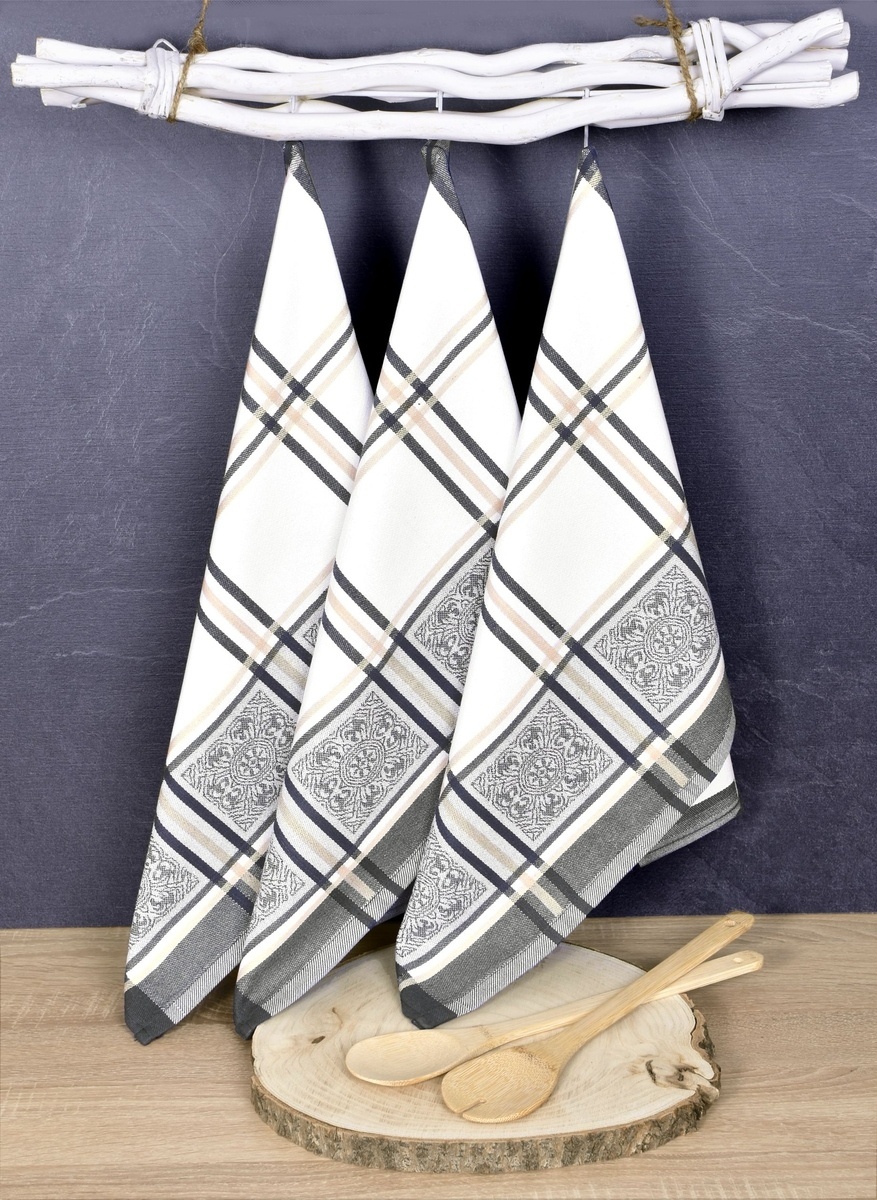 Luxusní kuchyňské utěrky, SOLE GREY Egyptská bavlna set 3 ks