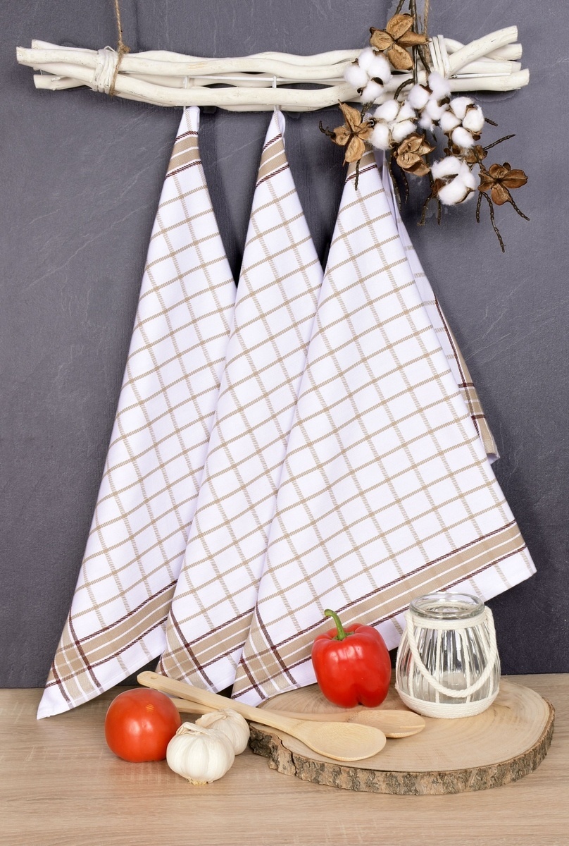 Luxusní kuchyňské utěrky, Beige Set Egyptská bavlna Komplet 3 ks