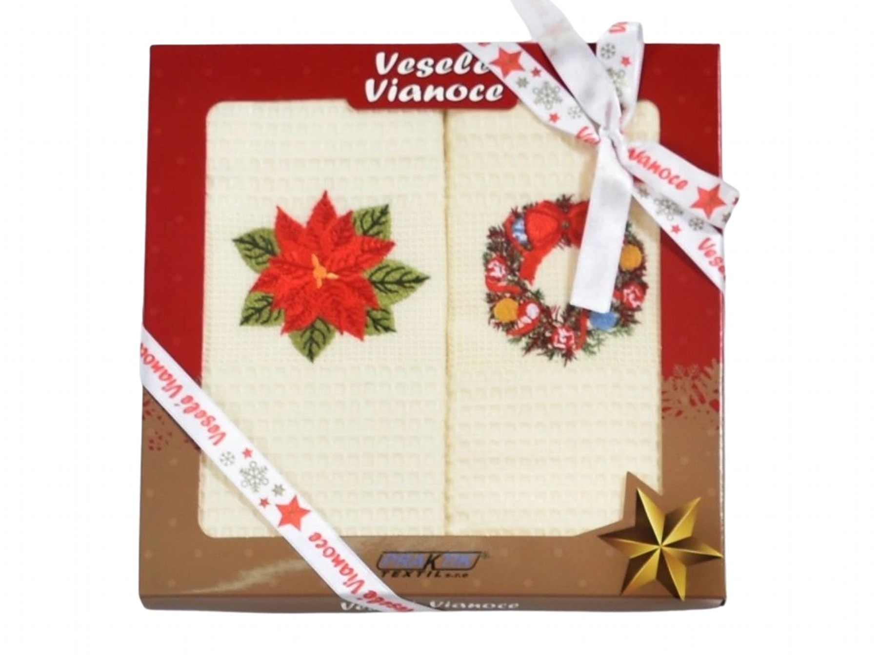 Praktik Vánoční dárková sada utěrek 50x70 Hvězda a věnec 2 ks