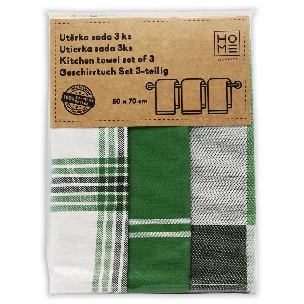 HOME ELEMENTS Set utěrek z egyptské bavlny 50*70 cm, 3 ks, Zelené listy