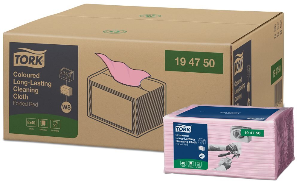 Utěrky čisticí skládané Tork, barevný program, 40 ks, 38 x 30 cm, červené, W8