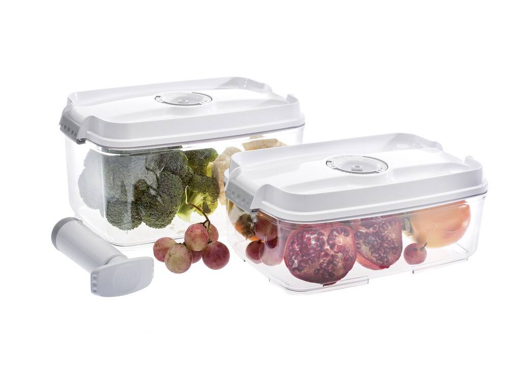 Obsah balení: 3l a 4,5l obdélníková dóza; ruční vakuová pumpa.