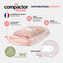 S úložnými vakuovými sáčky Compactor Aspispace dosáhnete opravdu maximální úspory místa, a to nejen doma, ale třeba i na cestách. Textilie uskladněné tímto způsobem ušetří 80 % prostoru (např. peřina o tloušťce 50 cm se ve vakuovém pytli po odsátí vzduchu zmenší na 15 cm). Pytle jsou vyrobeny z polymeru s tvarovou pamětí, proto se při opětovném vpuštění vzduchu vrátí do původního tvaru. Navíc se jedná o materiál, který nemění textilní vlákno, což v praxi znamená, že pokud do pytle vložíte vyprané a vyžehlené oblečení (doporučujeme), ve stejném stavu ho po dekompresi opět vyndáte. Sáčky jsou opakovatelně použitelné.