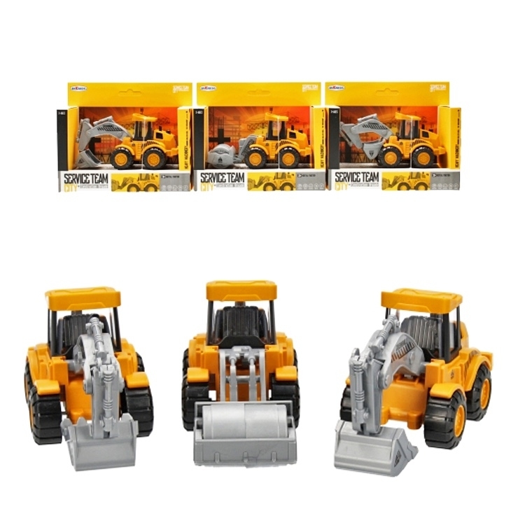 Stroj je k dispozici ve dvou verzích jako válec a rypadlo. Oba stroje mají pohyblivé prvky: bagr-chapadla a pohyblivé rameno, válec, který má také pohyblivé rameno, což usnadňuje obsluhu stroje. Stroje mají funkci pull & back, takže po posunutí vozidla dopředu pokračuje v samostatné jízdě, zadní kola mají na pneumatikách malou gumu, která stabilizuje adhezi vozidla k vozovce. Stroj je vyroben z plastu.