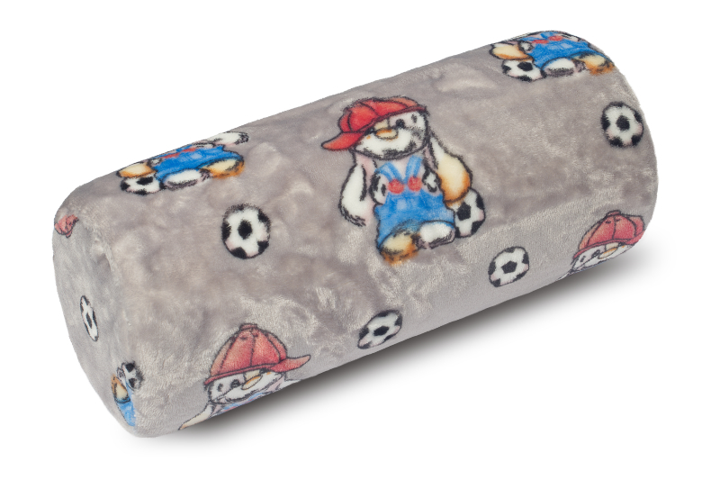 Polštářek ve tvaru válce vhodný pro malé i větší děti. Mohou ho použít jako polštářek za krk, pod nohy, a pod. Potah je s veselým dětským motivem, je snímatelný na zip, uvnitř je výplň z polyuretanu. Povlak lze prát na 30°C v pračce.