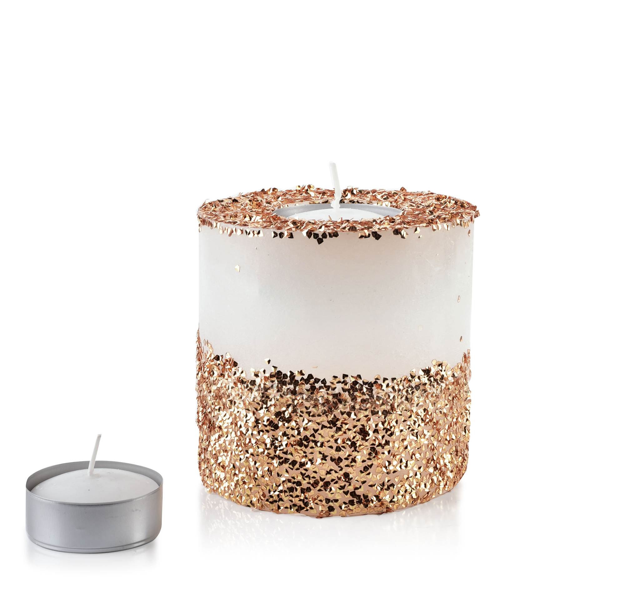ŚWIECA LAMPION WALEC 120X120 DIAMENT BIAŁA ZŁOTE KRYSZTAŁKI