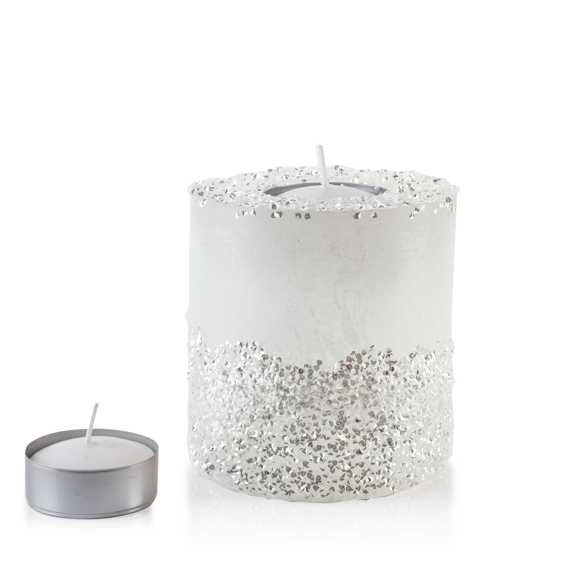 ŚWIECA LAMPION WALEC 120X120 DIAMENT BIAŁY SREBRO