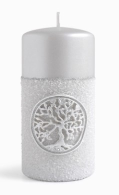Świeca DRZEWKO SZCZĘŚCIA Walec średni parafinowa 7x11,5cm szara