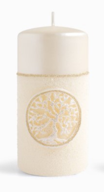 Świeca DRZEWKO SZCZĘŚCIA Walec średni parafinowa 7x11,5cm kremowa