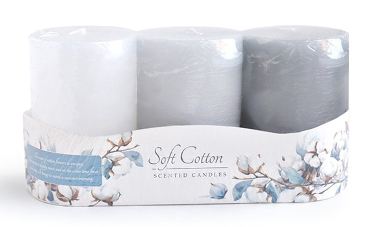 Świeca zapachowa FLORIS SOFT COTTON 3sztuki walec 6x9cm parafinowa