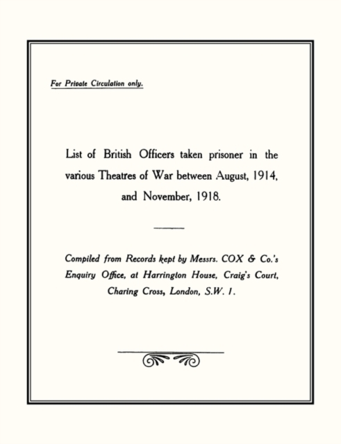 List of British Officers Taken Prisoner in the Various Theatres of War - Aug 1914 to Nov 1918