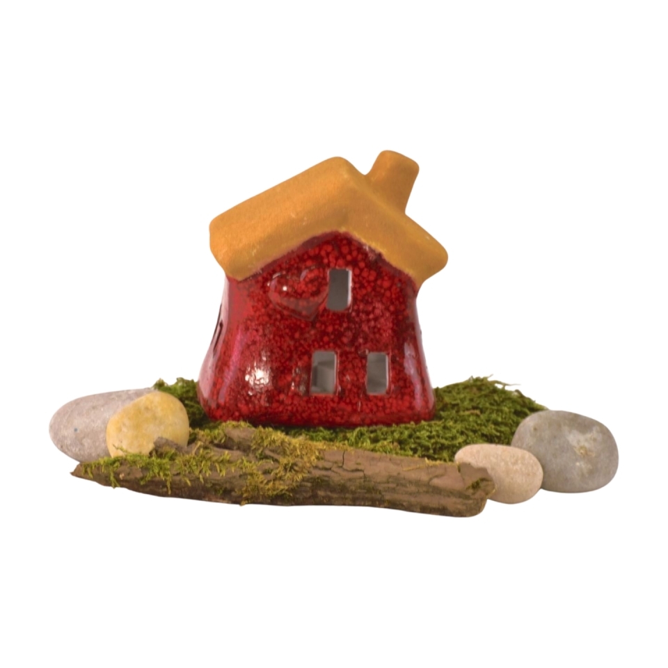 Kouzelné keramické domečky s LED světýlkemRozměry:výška 10 cm, šíře 9 cmokénka jsou z přední části a z každého boku, zadní část je plná