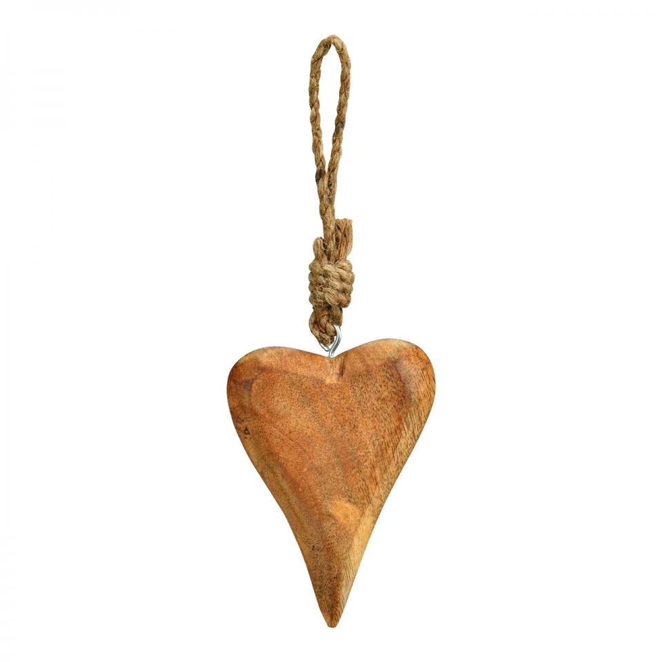 Závěsné srdce z mangového dřeva přírodní, 7x9x2cm