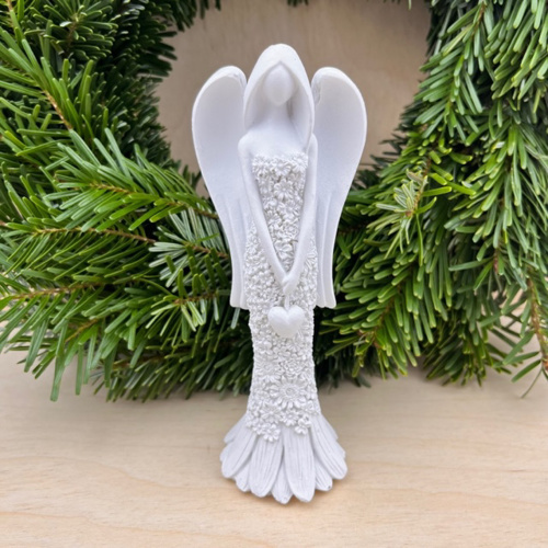 Soška anděla v květinových šatech se srdcem 15 cm