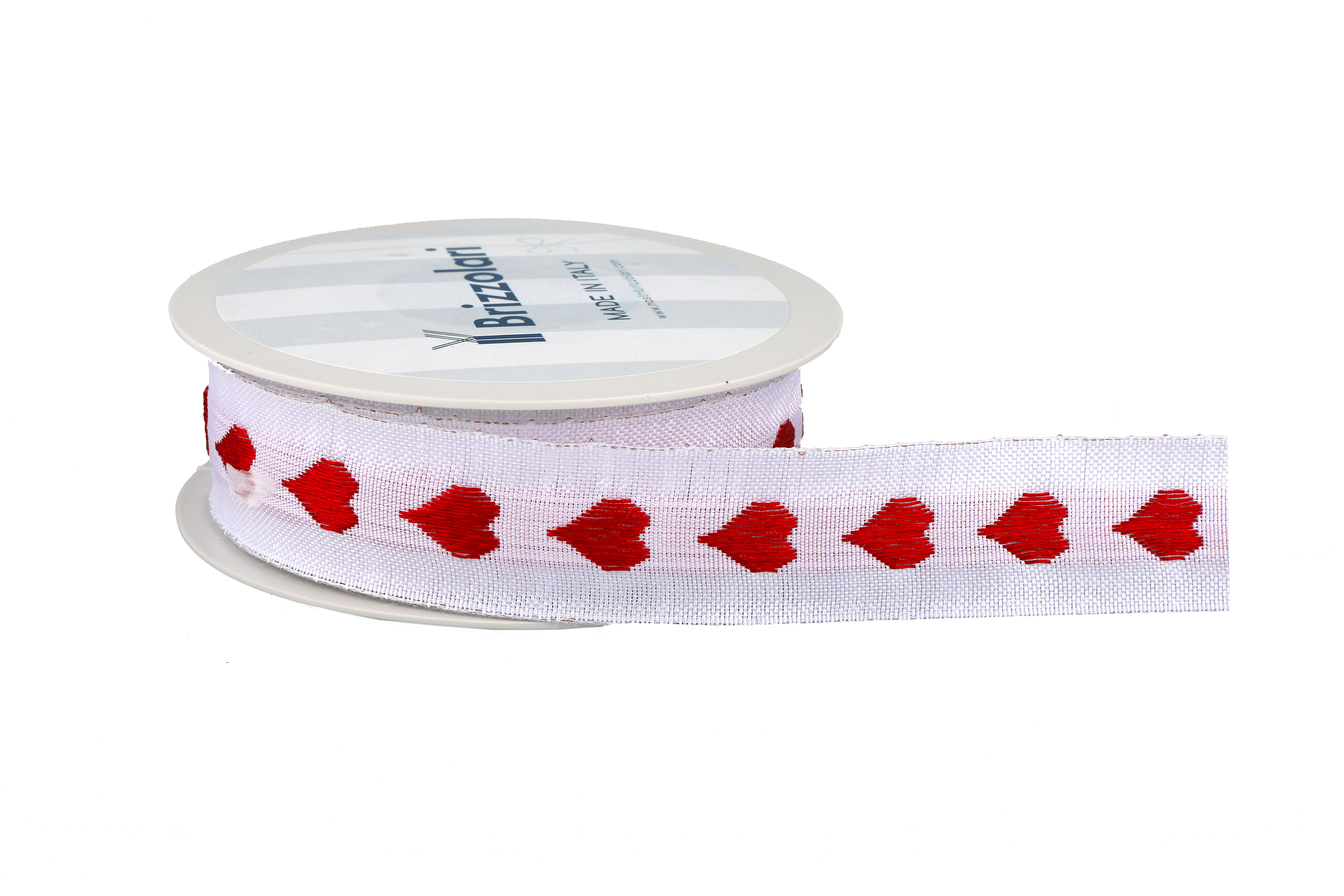 Stuha textilní tkaná srdce 354 3cm x 10m animato - 17 BÍLÁ/ČERVENÁ