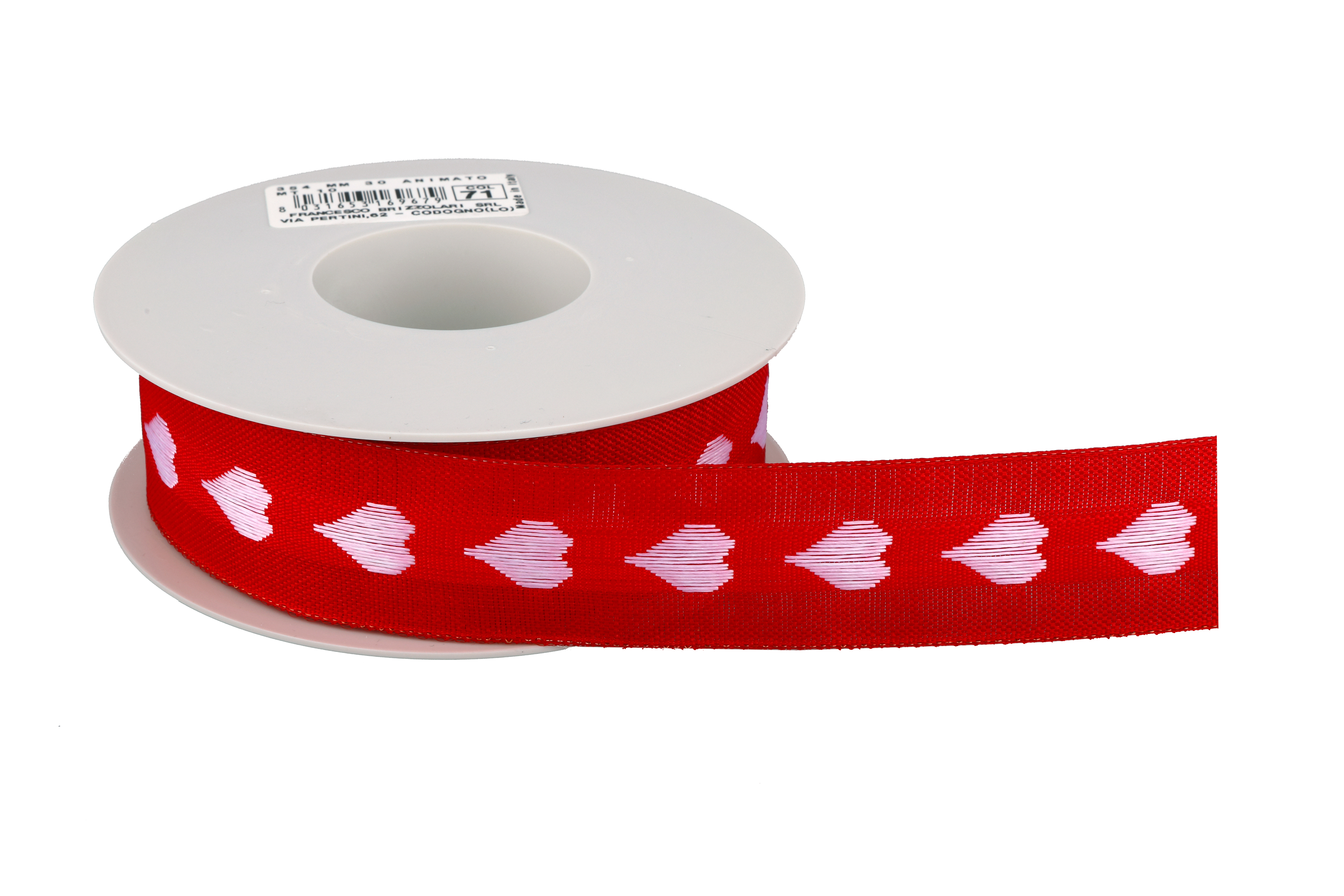 Stuha textilní tkaná srdce 354 3cm x 10m animato - 71 ČERVENÁ/BÍLÁ