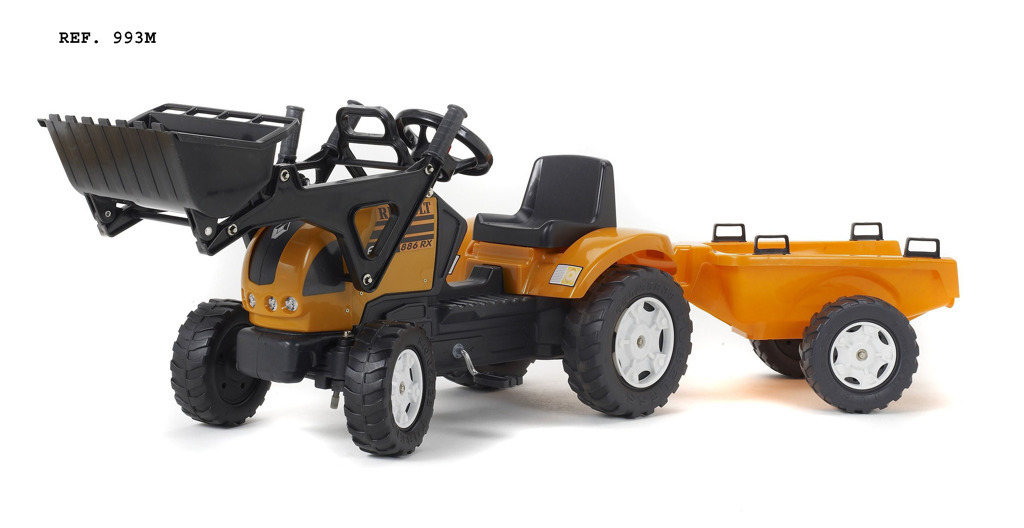 Traktor Renault Arion Claas Arion 886RX šlapací oranžový s přední lžící a valníkem. Z vysoce odolného a kvalitního plastu. Velikost 172×42×54 cm Věk 2+. Všechny traktory Falk jsou testovány na 50kg - dle požadavků evropských norem. Vyrobeno ve Francii.