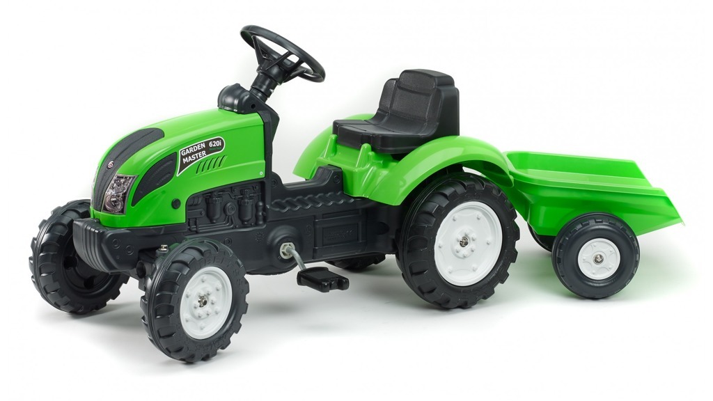 Traktor Garden Master šlapací s valníkem zelený. Z vysoce odolného akvalitního plastu. Velikost 123×42×54 cm. Věk 2+. Všechny traktory Falkjsou testovány do 30kg - dle požadavků evropských norem. Vyrobeno veFrancii.