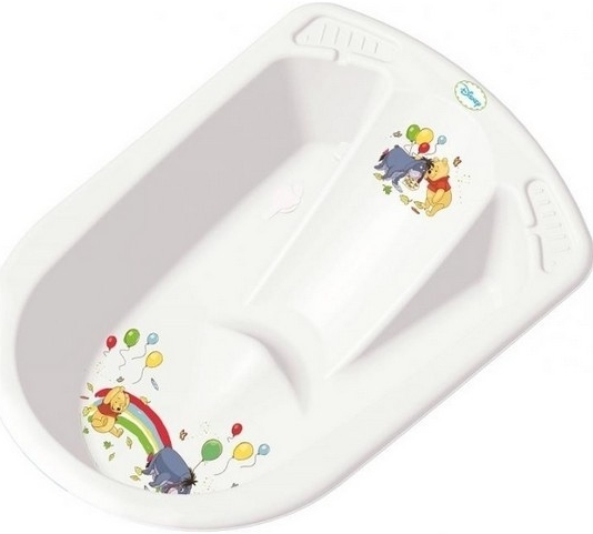 Vanička s ergonomicky tvarovaným dnem a vypouštěcím otvorem pro děti od 0 až do 1 roku.