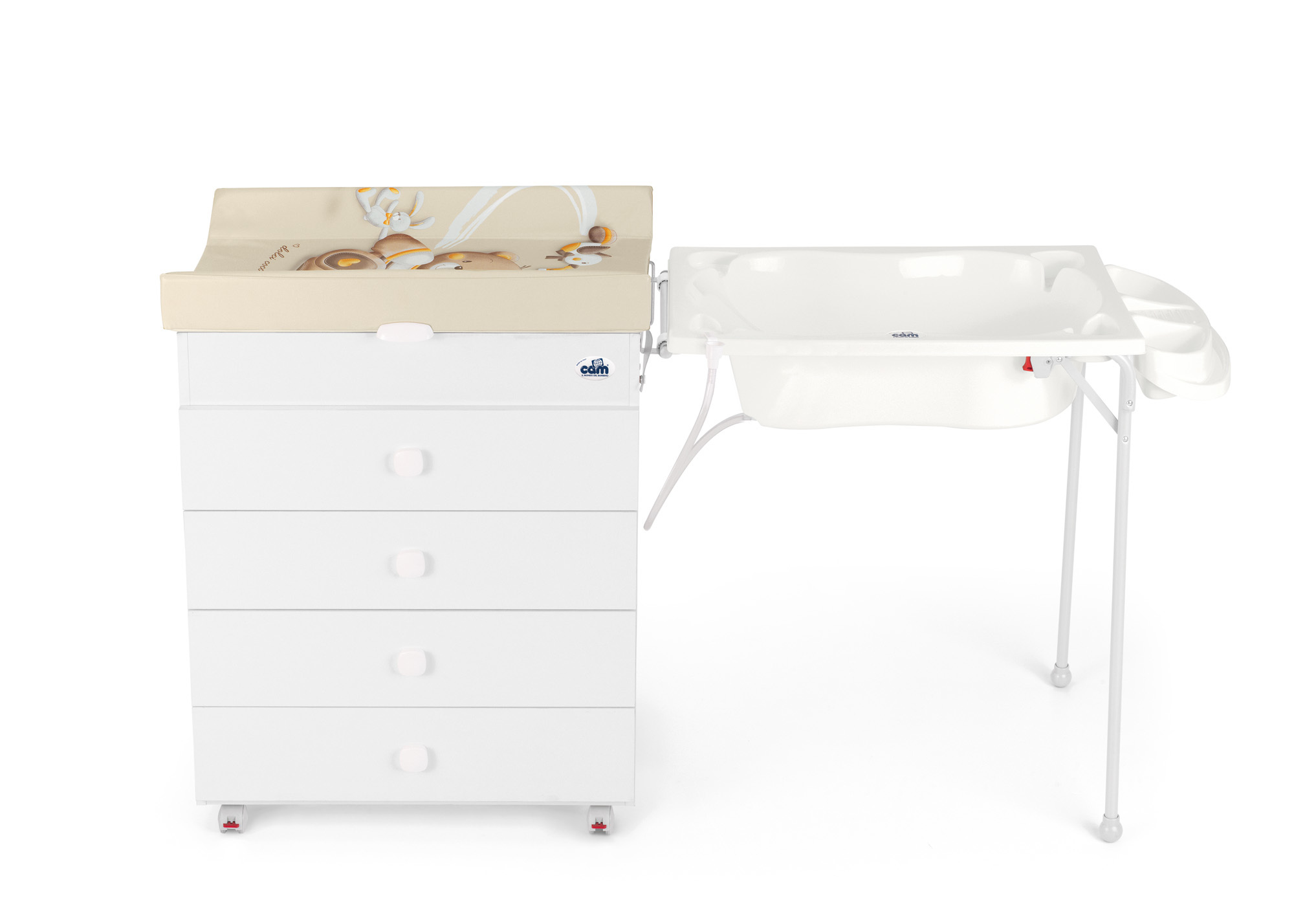 Praktický kovový stojan na vaničku, který lze připojit přímo k přebalovací komodě Asia.