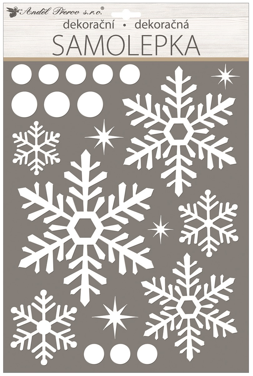 Samolepka vločky, bílá s glitry 28 x 41 cm