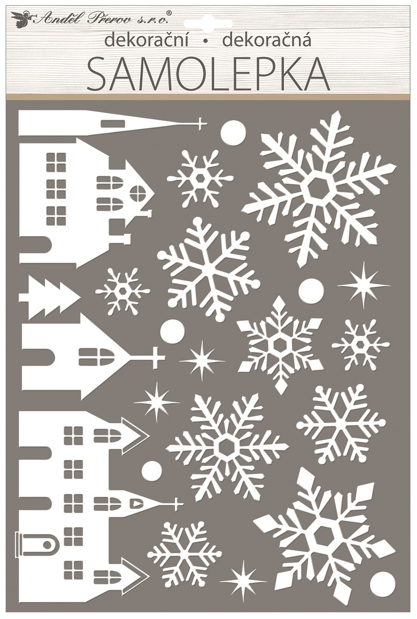 Samolepka zimní město, bílá s glitry 28 x 41 cm