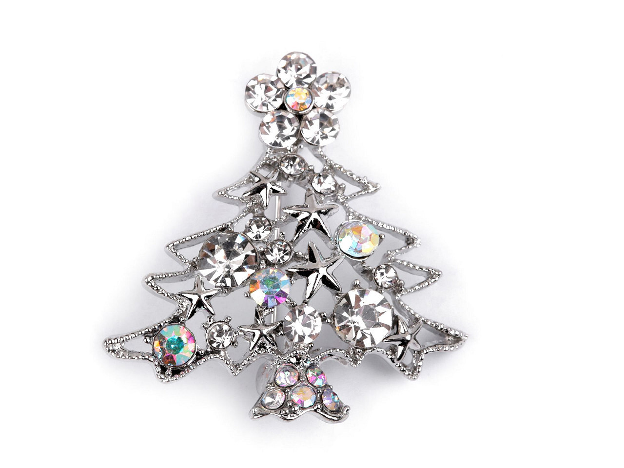 Brož s broušenými kamínky vánoční stromeček - 1 ks - 1 platina AB