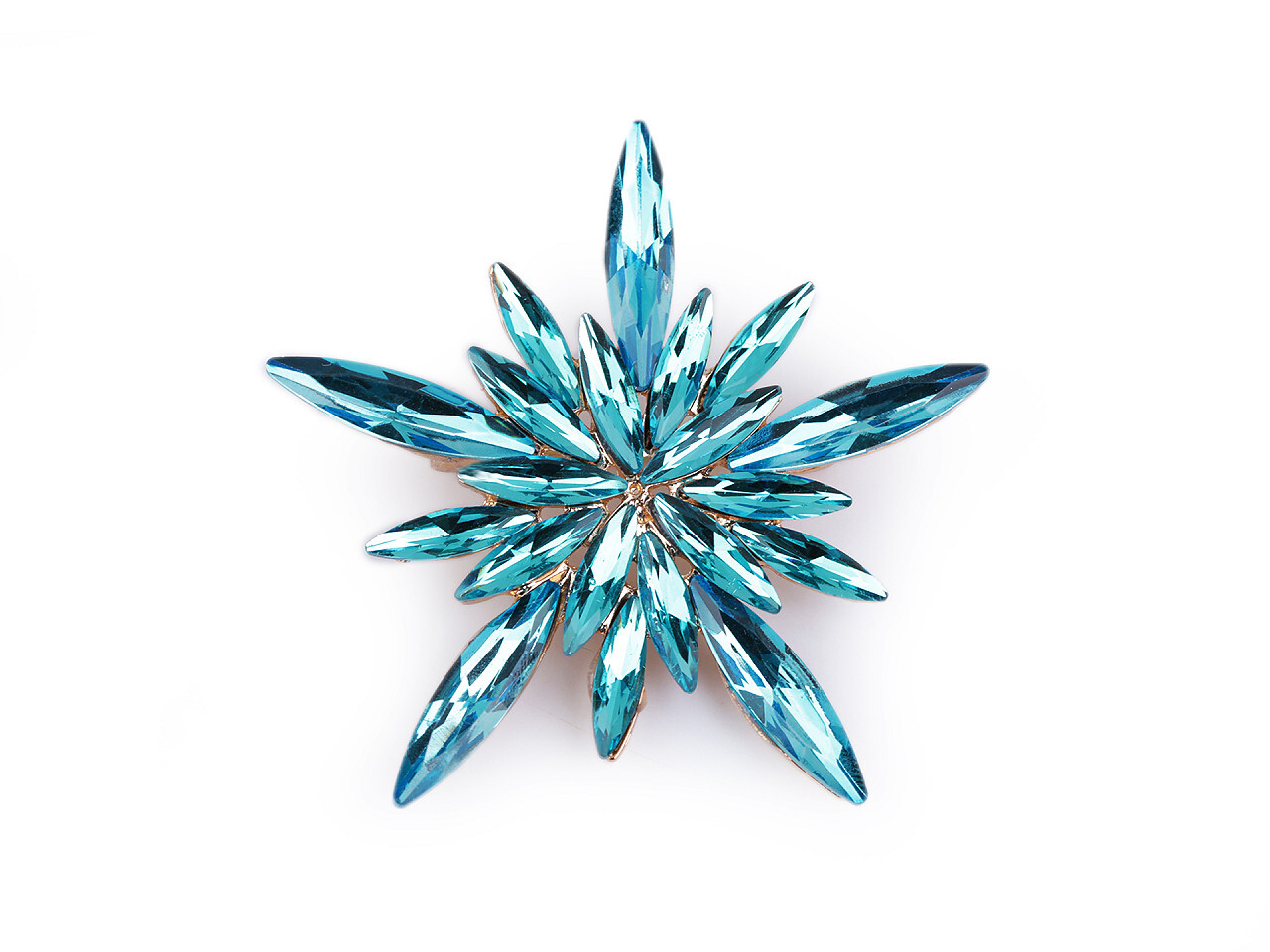 Brož s broušenými kamínky vločka - 1 ks - 3 modrá azurová