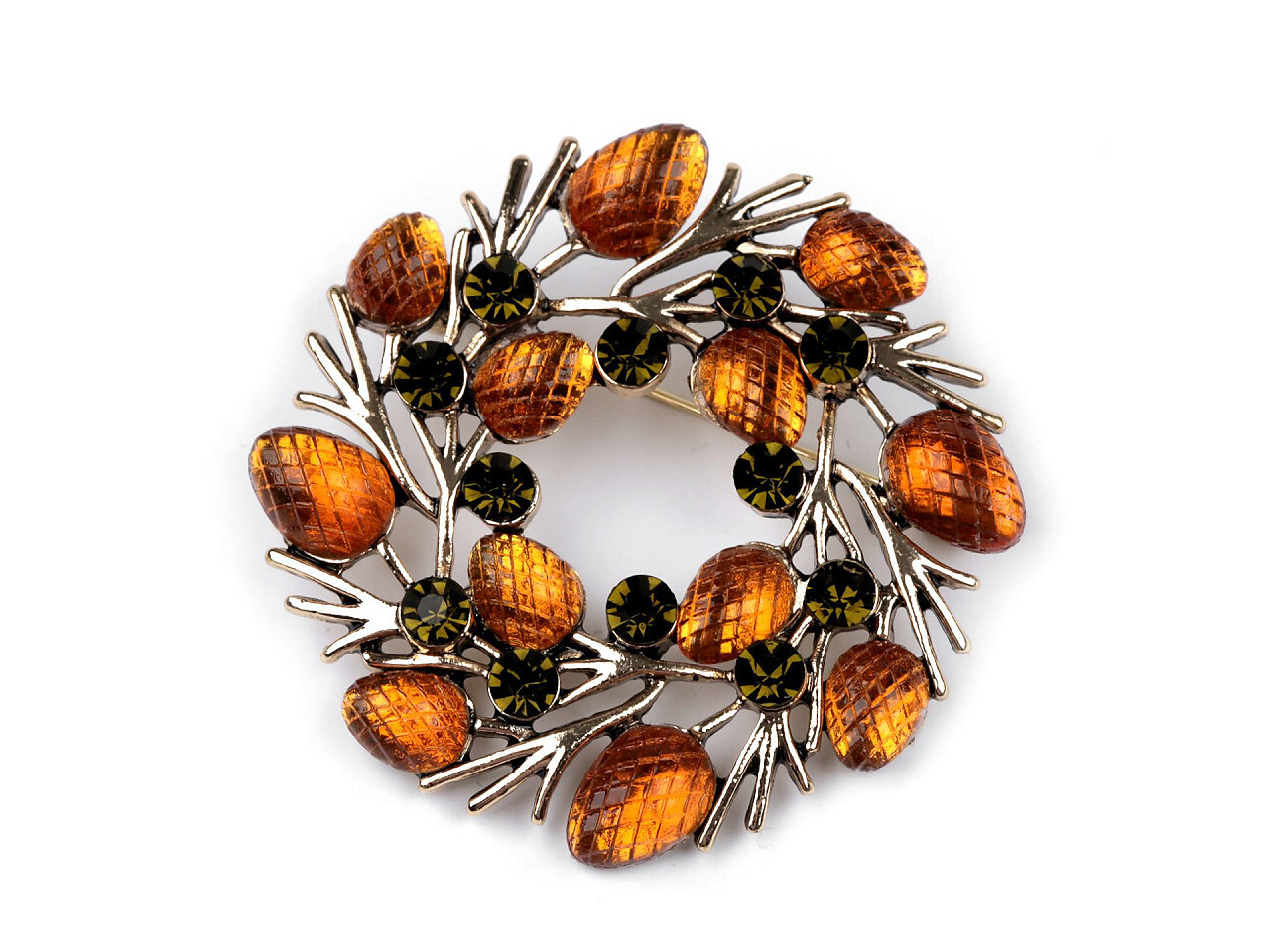 Brož s broušenými kamínky věneček, sáňky - 1 ks - 4 oranžový jantar