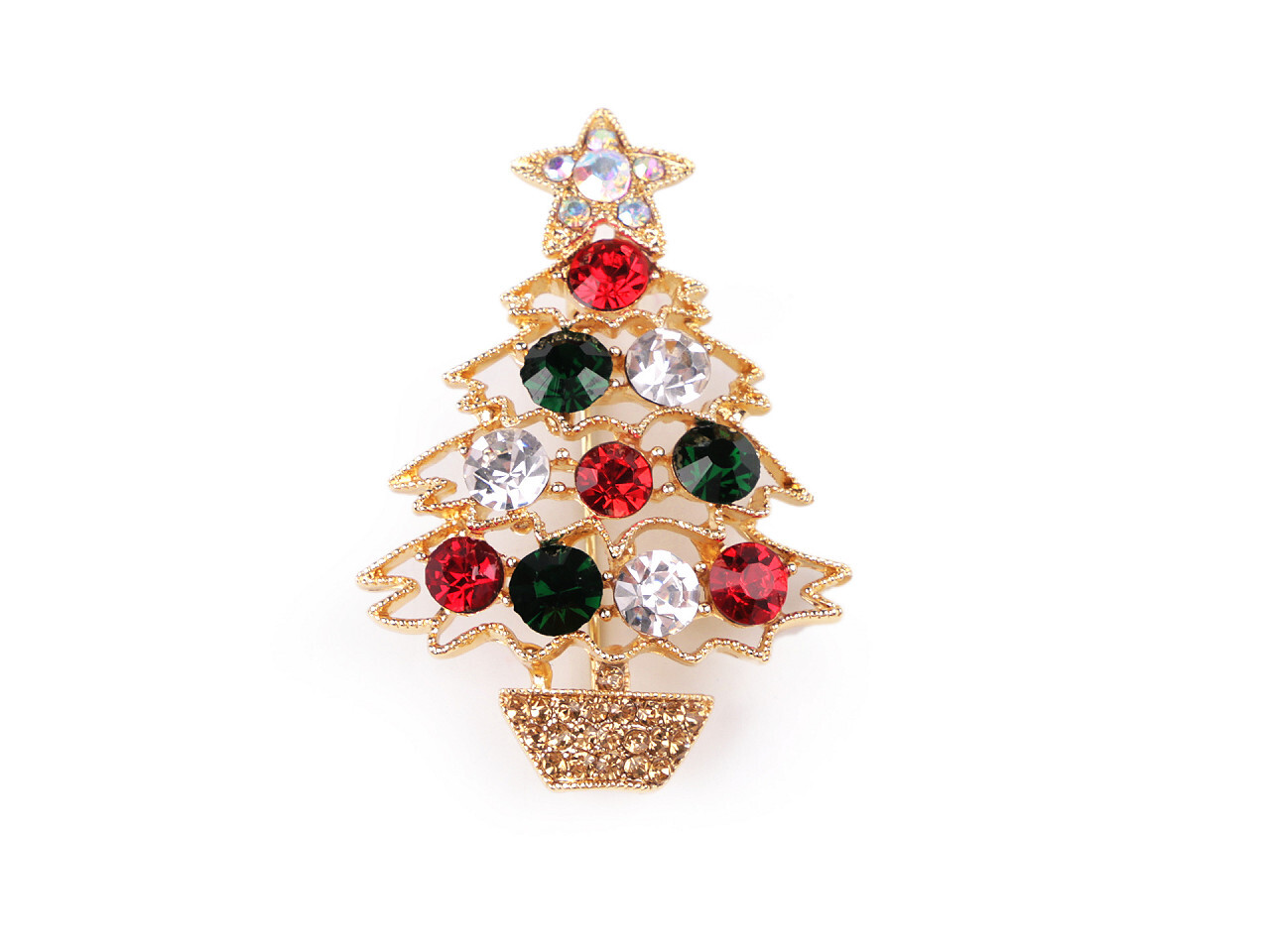 Brož s broušenými kamínky stromeček, věneček, sněhuláci - 1 ks - 1 zlatá stromeček