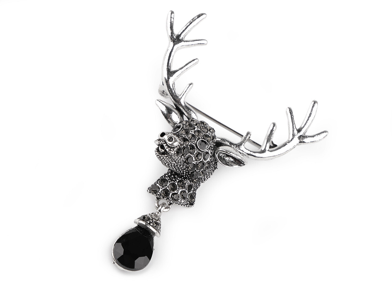 Brož s broušenými kamínky jelen - 1 ks - 1 platina černá