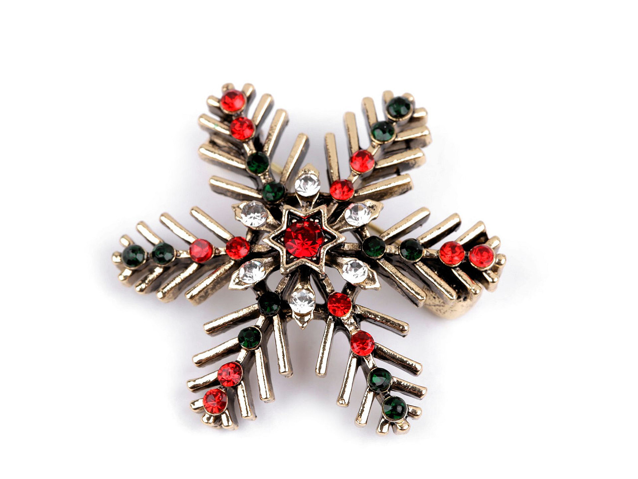 Brož s broušenými kamínky vločka - 1 ks - 1 zlatá
