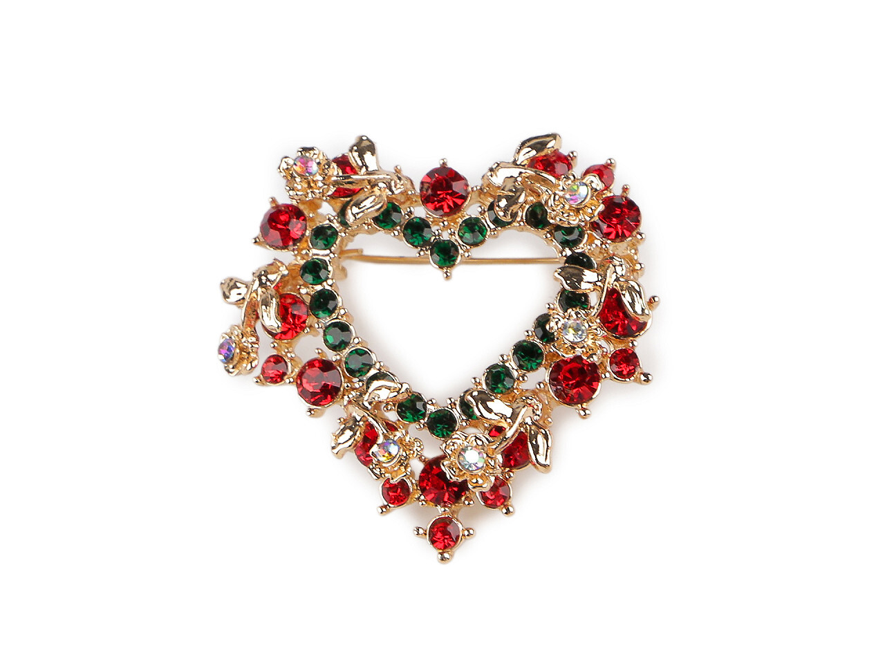Brož s broušenými kamínky vánoční stromeček, srdce - 1 ks - 2 červená srdce