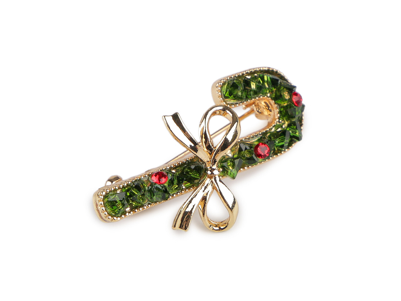 Vánoční brož s broušenými kamínky - 1 ks - 2 zelená tmavá
