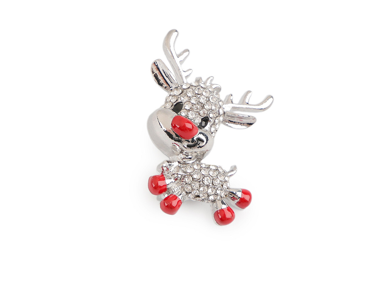 Brož s broušenými kamínky sob - 1 ks - 1 stříbrná červená