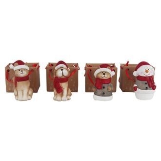 Box vánočních dekorací v taštičce.Box obsahuje 24 dekorací v taštičce.Rozměry dekorací 4.5 × 3.5 cm, výška 6.5 cm, taška: 6 × 3.5 cm, výška 5 cm, box: 26 × 22.5 cm, výška 8.5 cm.Barva : kombinace hnědá, bílá, červená, šedá.Materiál : terakota.
