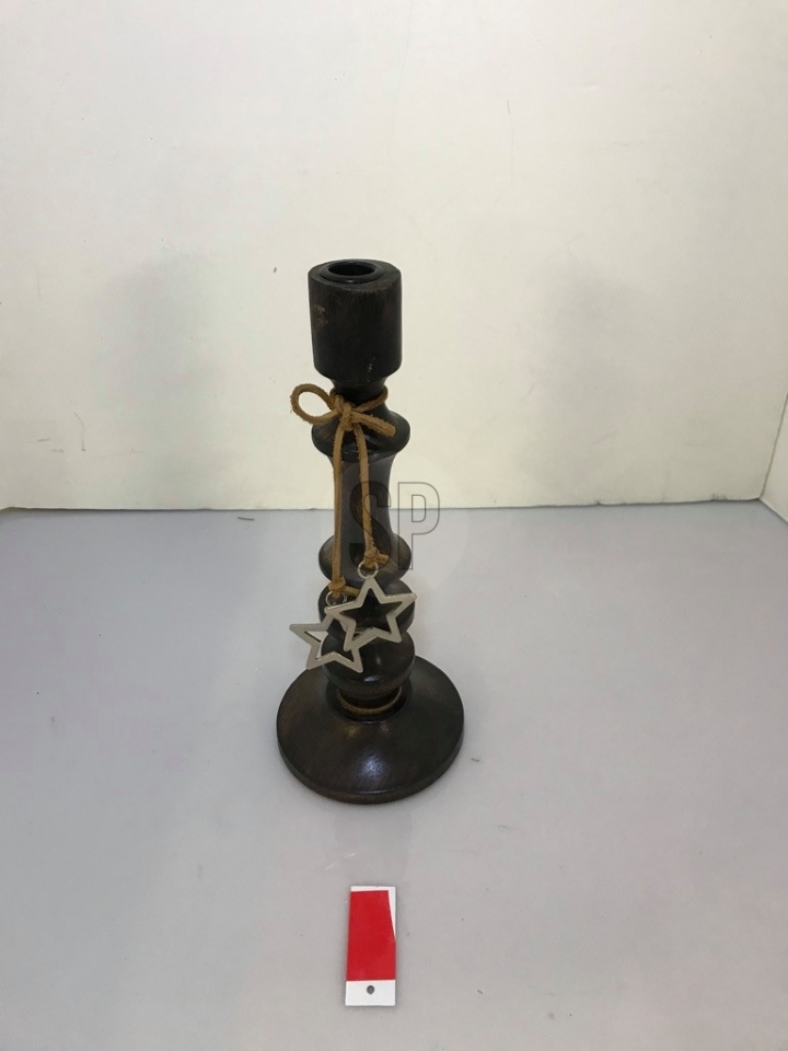 Dřevěný svícen Mango wood s hliníkovým kalíškem na svíčku. Na svícnu jsou zavěšené 2 hvězdičky.