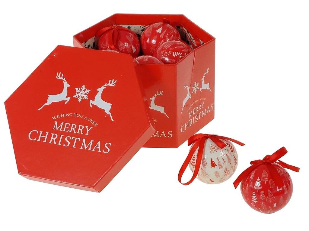 zestaw 14 plastikowych bombek śr.6cm, w ozdobnym pudełku; 24x21x16cm, BOX číst celé
