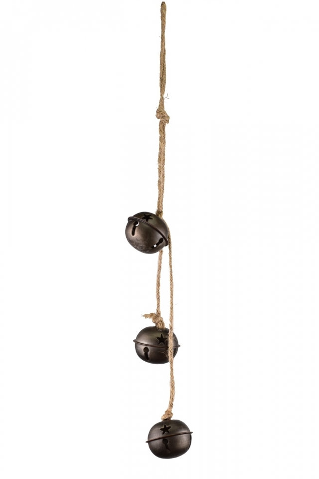 Tři antracitové kovové rolničky na jutovém provaze 4x5x45 cm