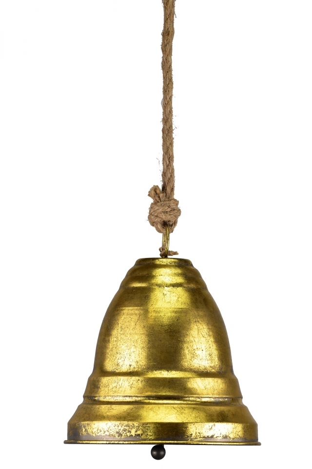Kovový zvonek na jutovém provaze.