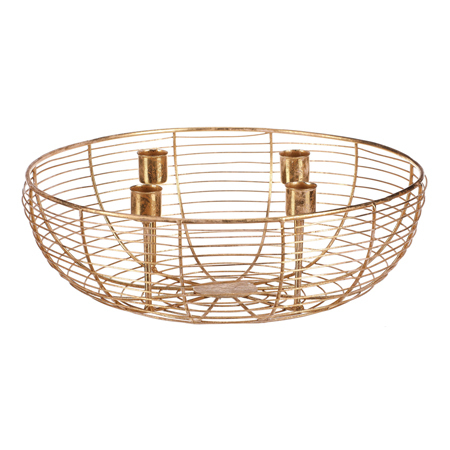 Svícen kovový - adventní, konstrukce ve tvaru mísy, zlatý.